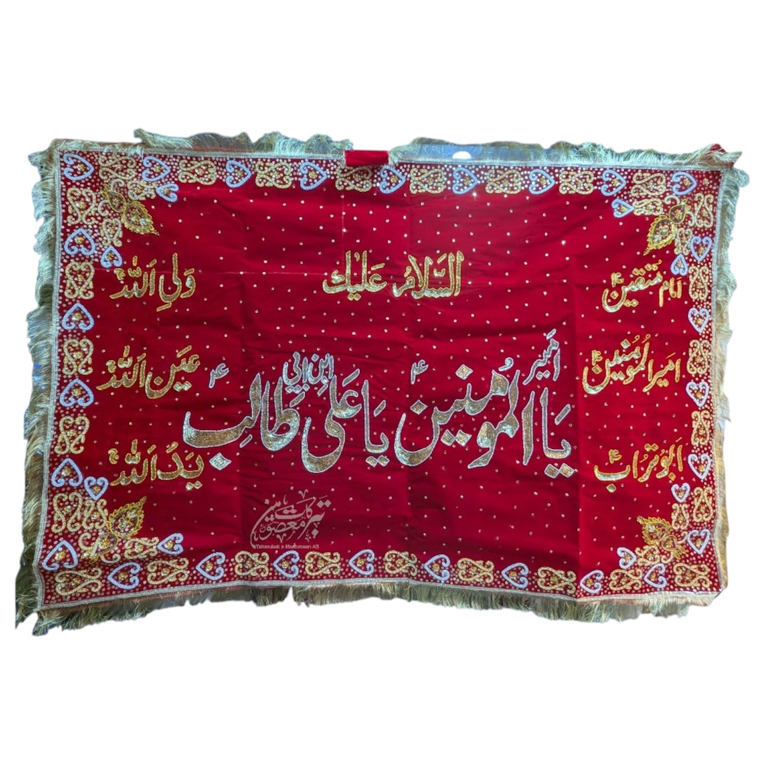 Beautiful Banner Imam Ali AS | Fabric Velvet Work Sitara Moti High Quaility Banner | Size 8x5ft