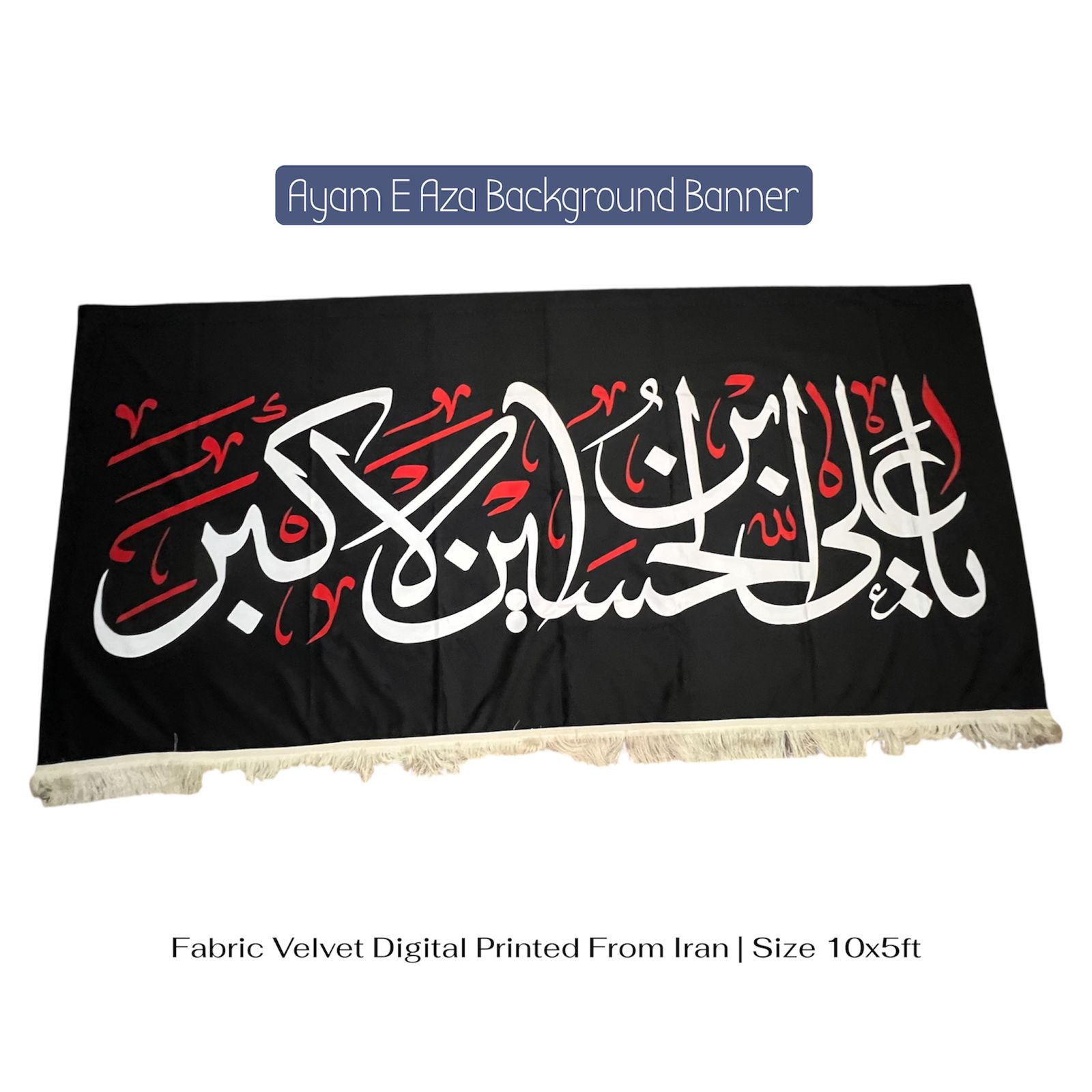 Ayam E Aza Banner Shahzada Ali Akbar AS Background Banner | Fabric Velvet Digital Printed Irani Banner For Use Ayam | Size 10×5ft | Deign By T&M