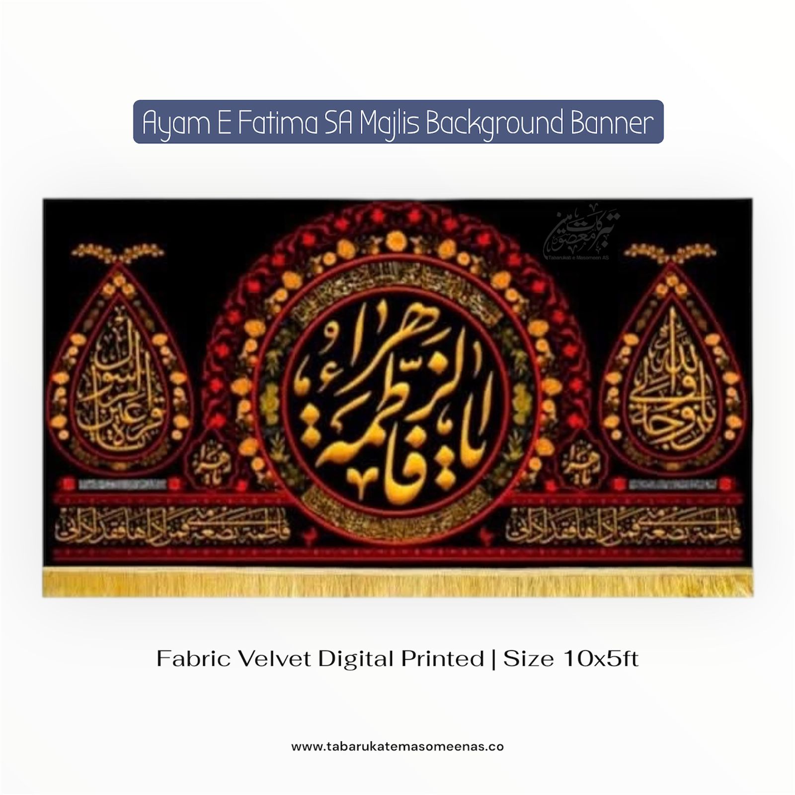 Ayam E Fatima Majlis Background Banners Ya Fatima Zehra SA | Fabric Velvet Digital Printed Irani Banner | Size 10x5ft | Deign By T&M