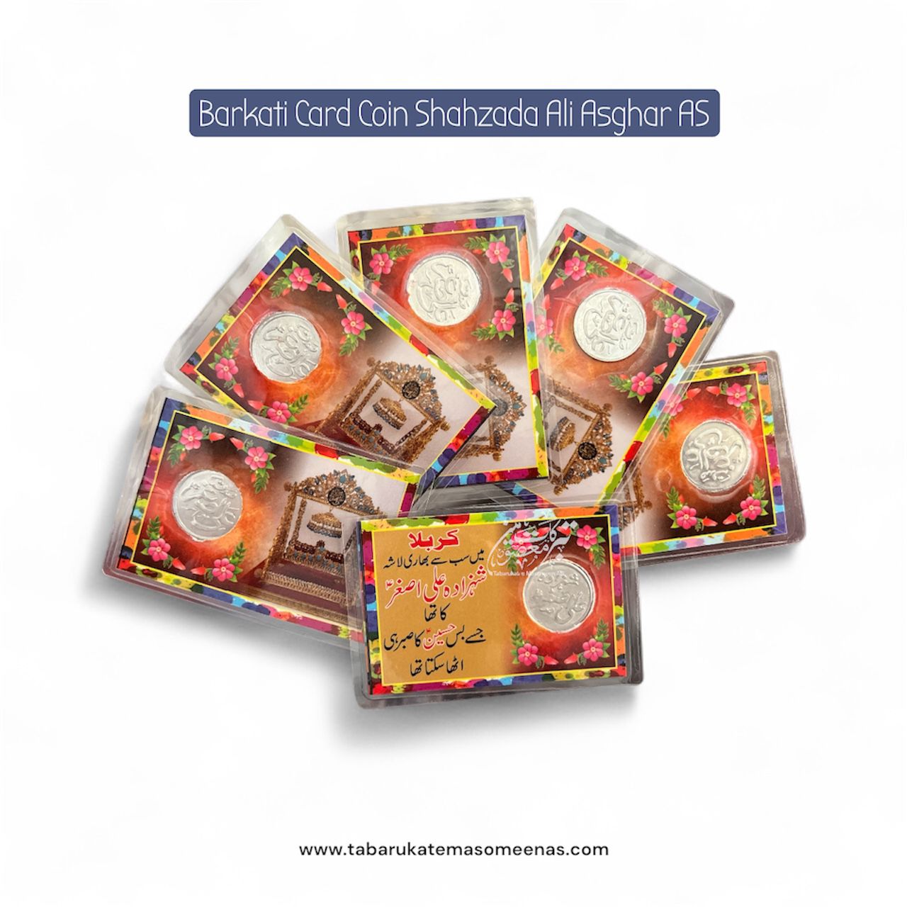 Barkati Ziyarat Card Coin Shahzada Ali Asgher AS | Best Tabarkat For Majlis | 50 pieces pack