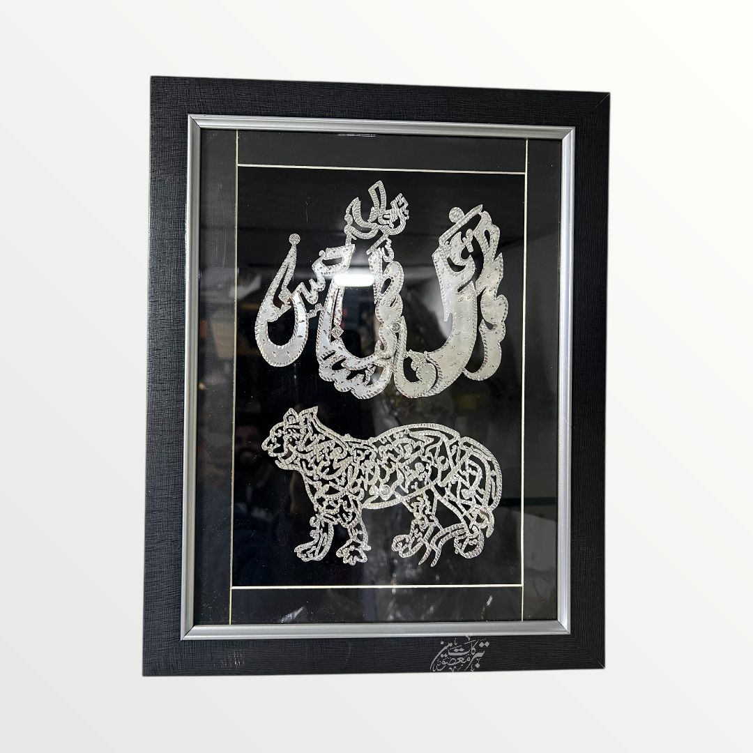 Beautiful Frame Allah , Panjetan AS Calligraphy with Lion Nade Ali AS