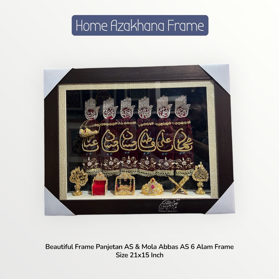 Beautiful Home Azakhana Frame Panjetan & Mola Abbas AS Alam High Quality Frame With Light | Patka Work Sitara Moti & Cora Dapka | Ziyarat All Manjus | Size 21x15inch | Design By T&M