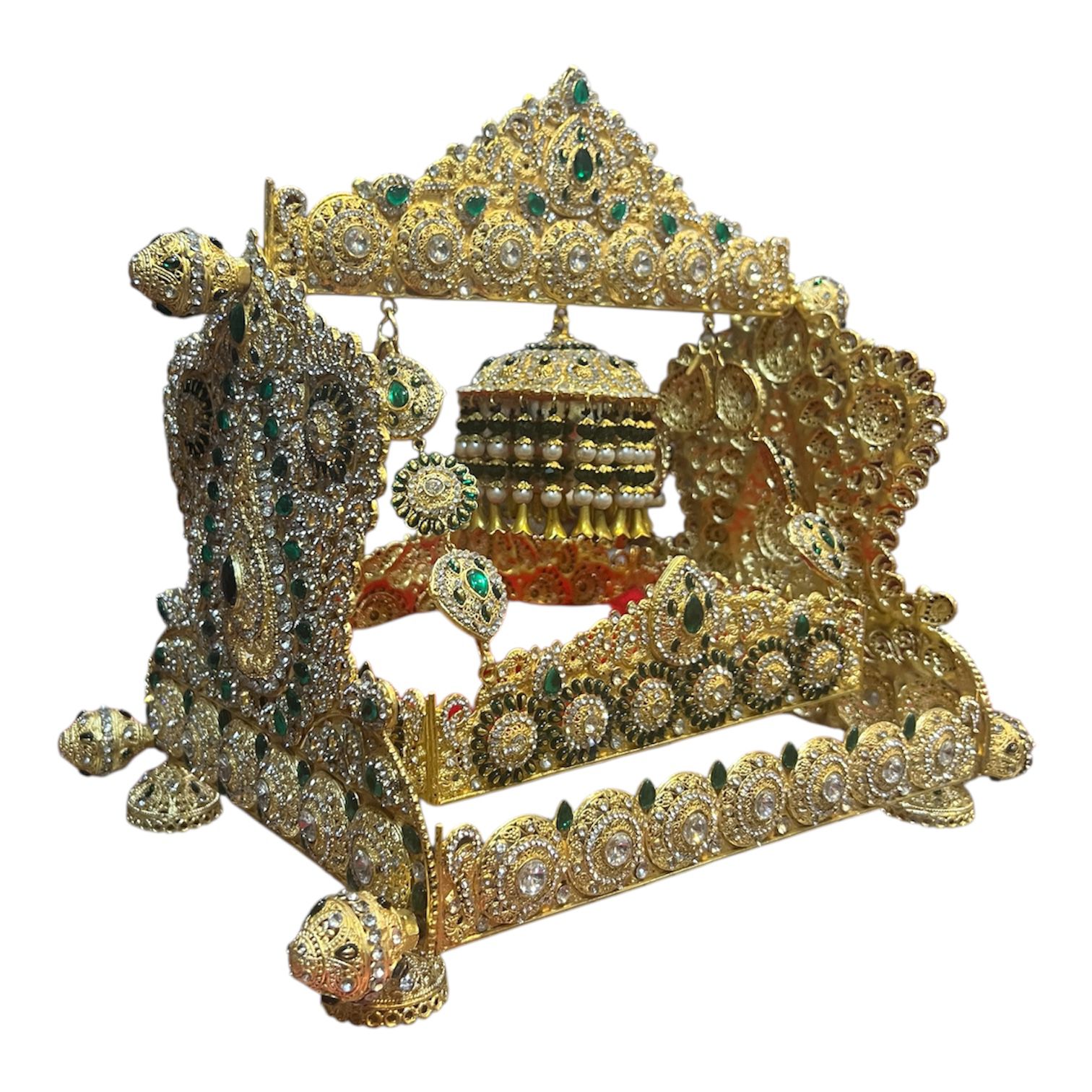 Beautiful Jhula Shahzada Ali Asghar AS | Material Manjus Work Green & White Pearls Stones | Size  14 Inch | Design By T&M