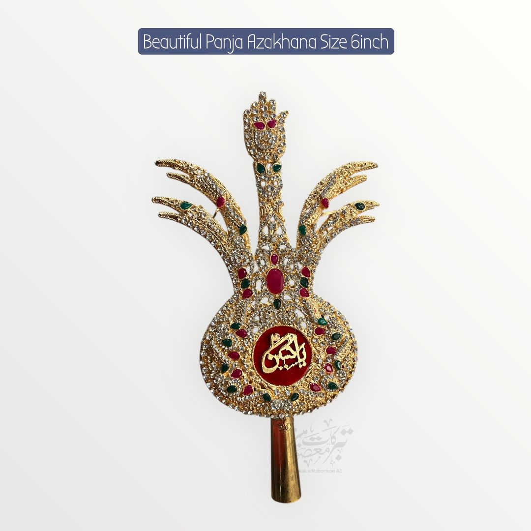 Beautiful New Arrival Panja Ya Hussain AS With Zulfiqar Shape  | Material Manjus Work Stones | Size 6inch