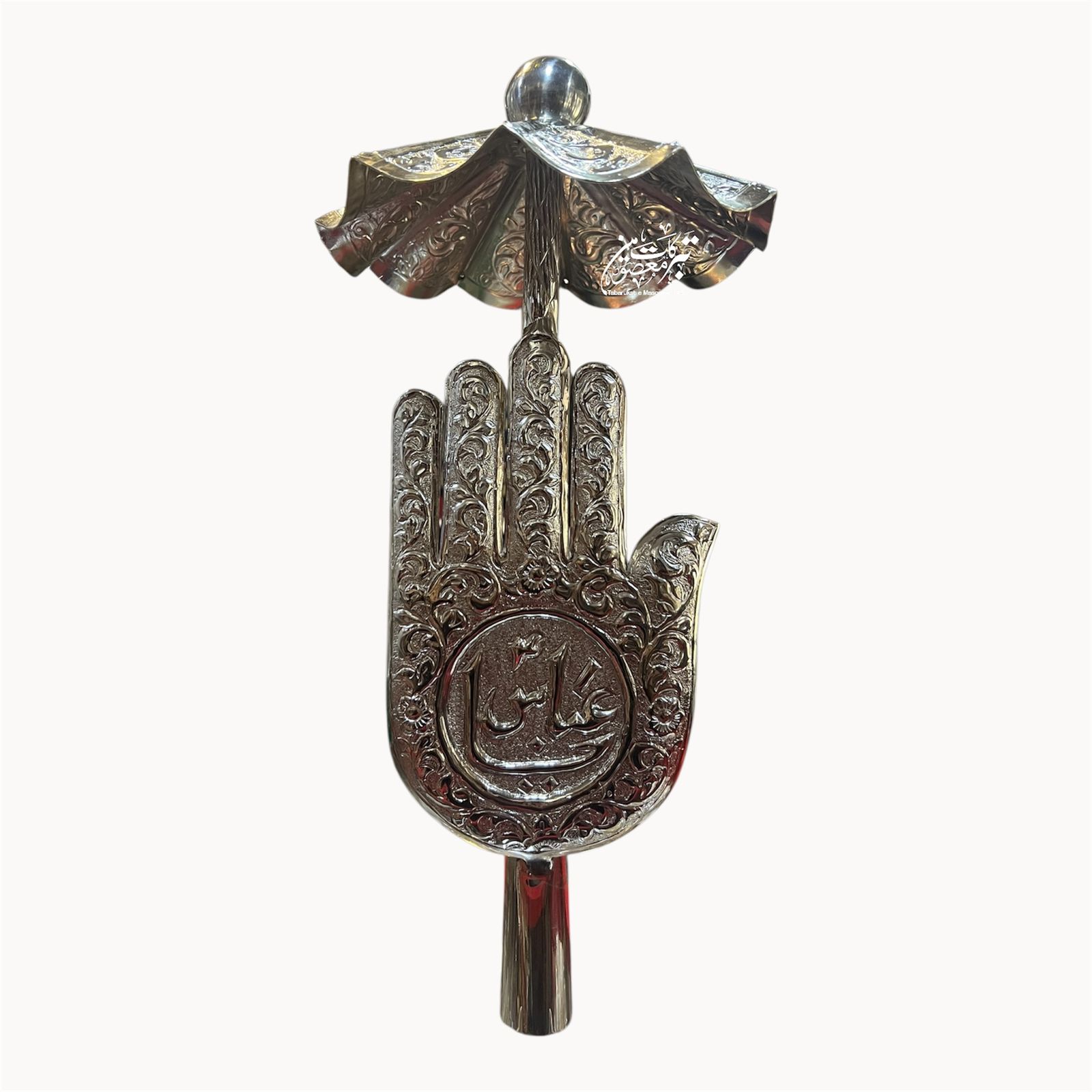 Beautiful Panja Hazrat Abbas AS With Umbrella | Material German Silver Silver Polish High Quality | Size 16 Inch Complete