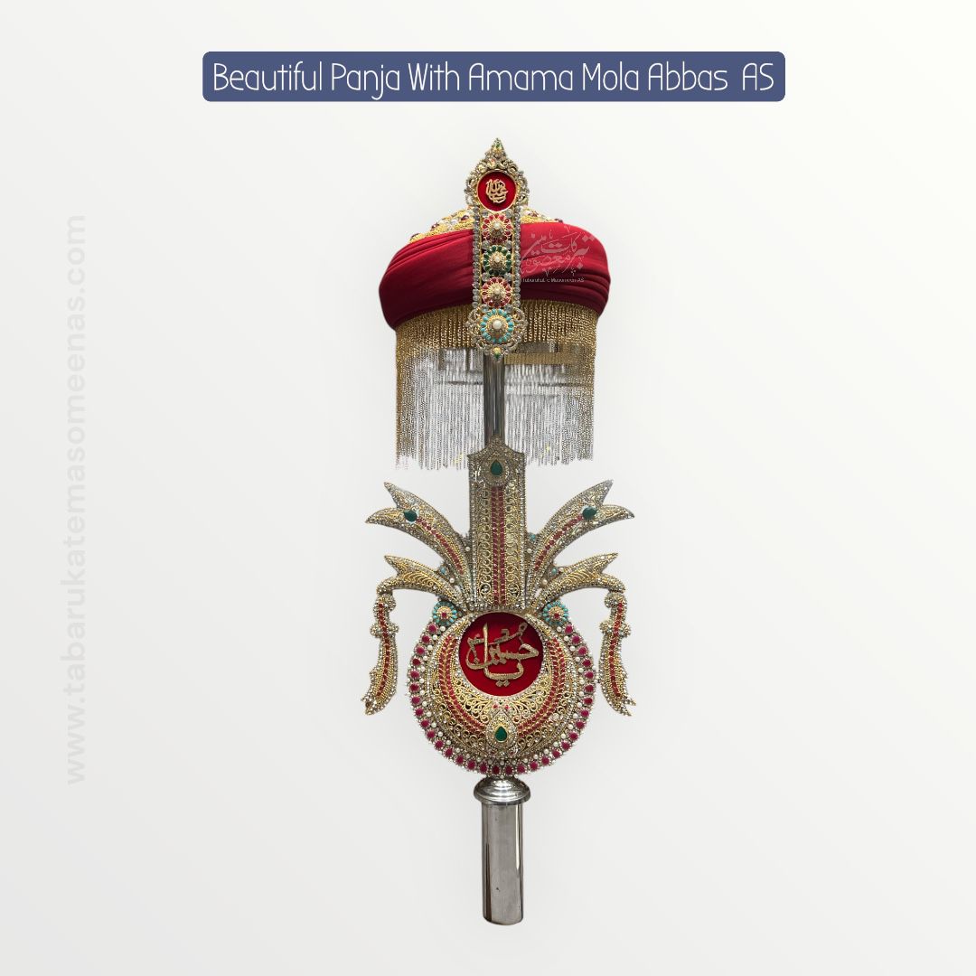 Beautiful Panja With Amama Ya Hussain AS | Material Manjus Work Pearls With Red Stones Combination | Size 36inch