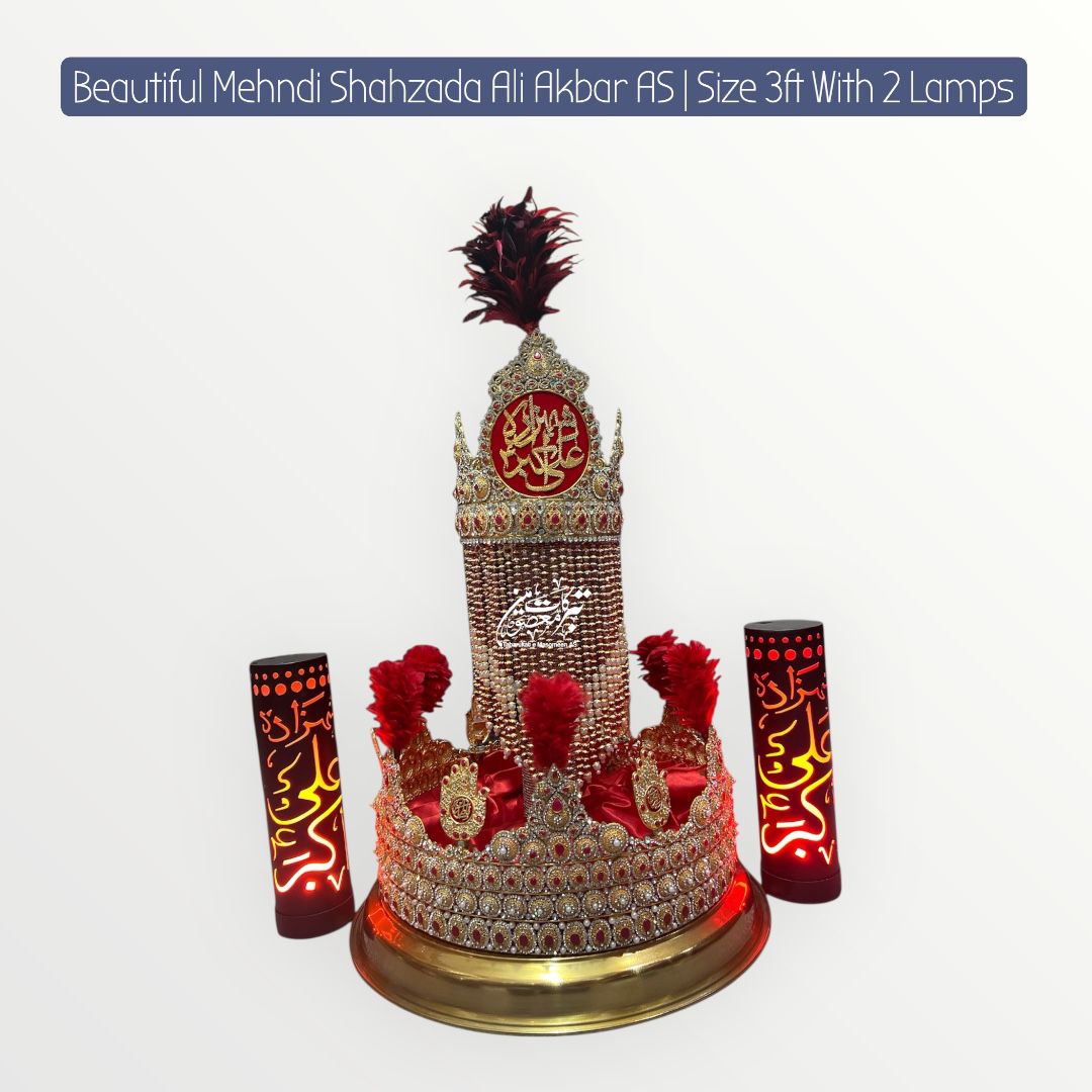 Beautiful Taaj , Mehndi WIth Sehra Shahzada Ali Akbar AS & 2 Lamps Shahzada Ali Akbar AS | Material Kashi & Work Red Stones High Quality Thaal With Gold Polish | Compelet Size 36Inch | Design By T&M
