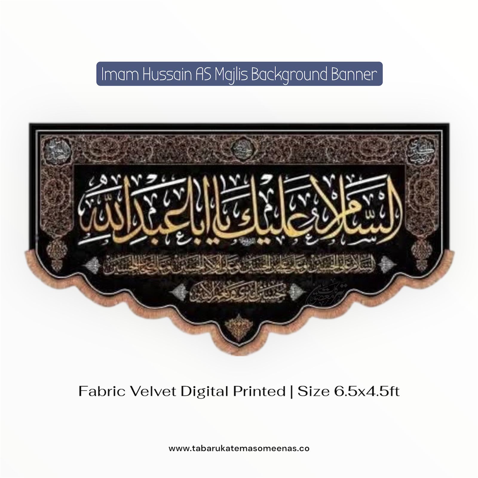 Imam Hussain AS Majlis Background Banners | Asalam Alaik Ya Aba Abdullah Al Hussain AS | Fabric Velvet Digital Printed Irani Banner | Size 6.5x4ft | Deign By T&M