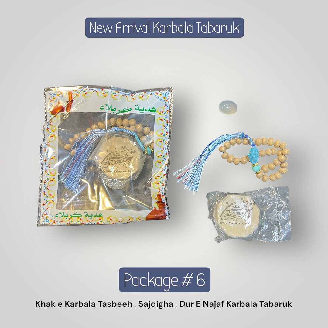 “Original Karbala Tabarukat | Khak E Karbala Tasbeh , Sajdigha & Dur E Najaf Stones (12 Pack Price)” has been added to your cart. View cart